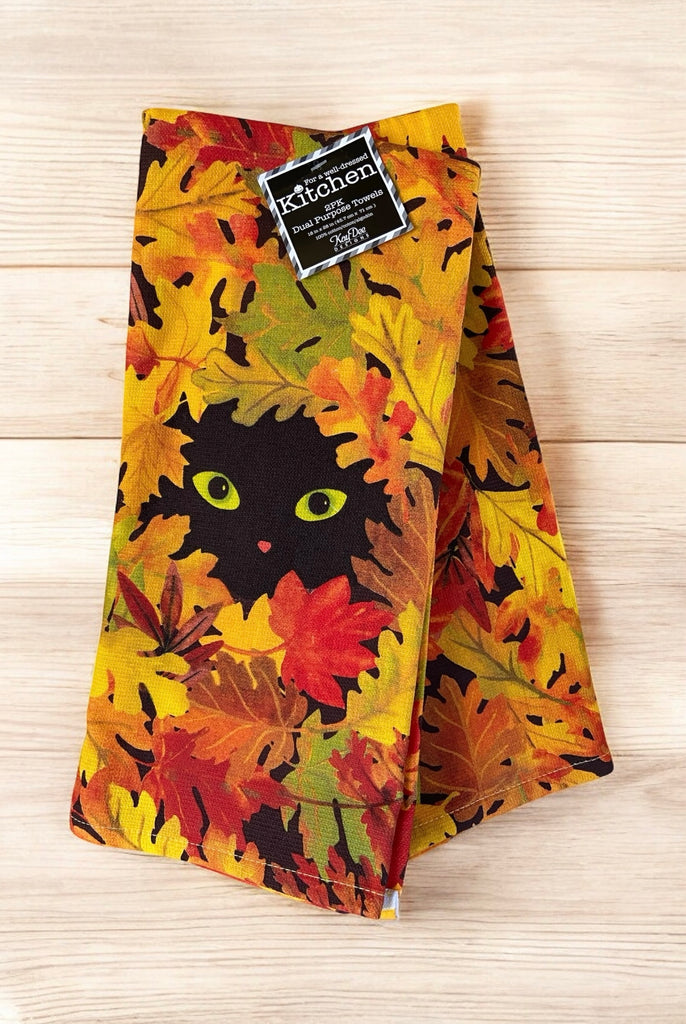 Black Cat & Autumn Leaves Kitchen Towel Set