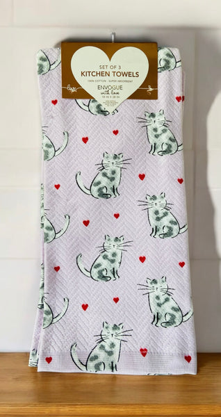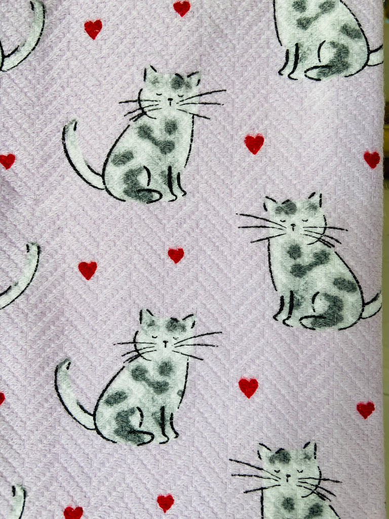 Grey Tabby Cats & Hearts Kitchen Towel Set